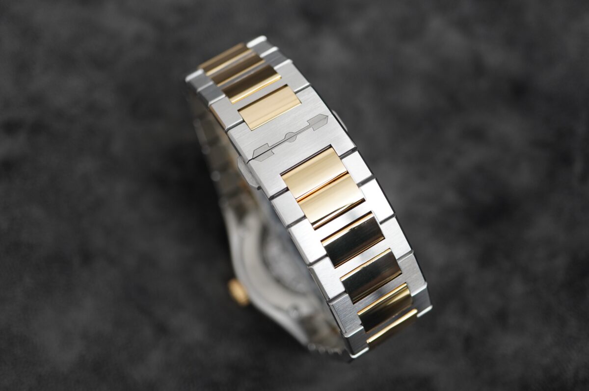 現行ロレアートは、ブレスレットのバックル部分には「GP」のロゴが入ります。