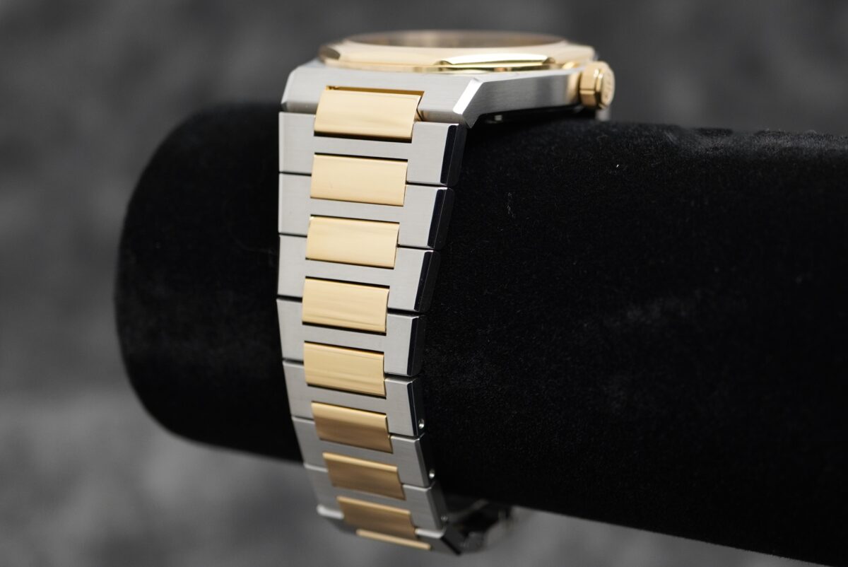 ロレアートは八角形のベゼルやケースと一体型になったブレスレットが特徴です。基本的なデザインはそのまま継承されていますが細かなディテールや仕上げが違います。