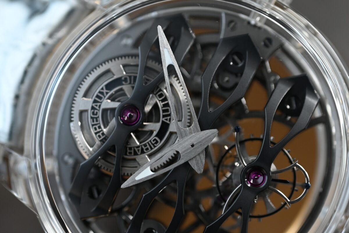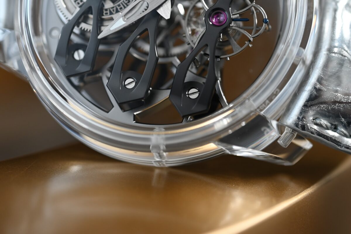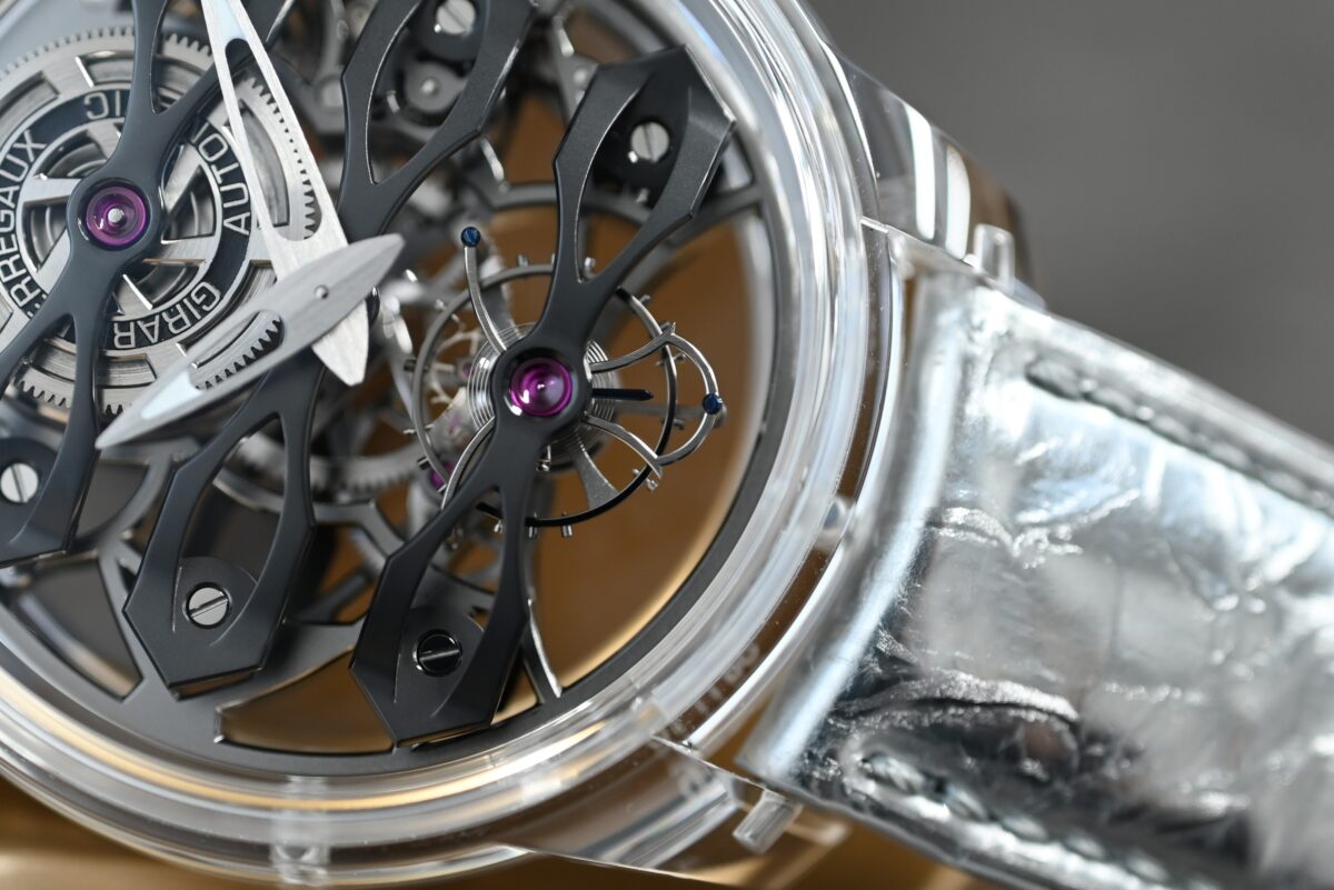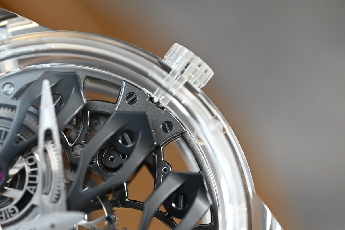 クエーサーは、ジラール・ペルゴとしては初めて、サファイアクリスタルケースを採用したモデルになります。