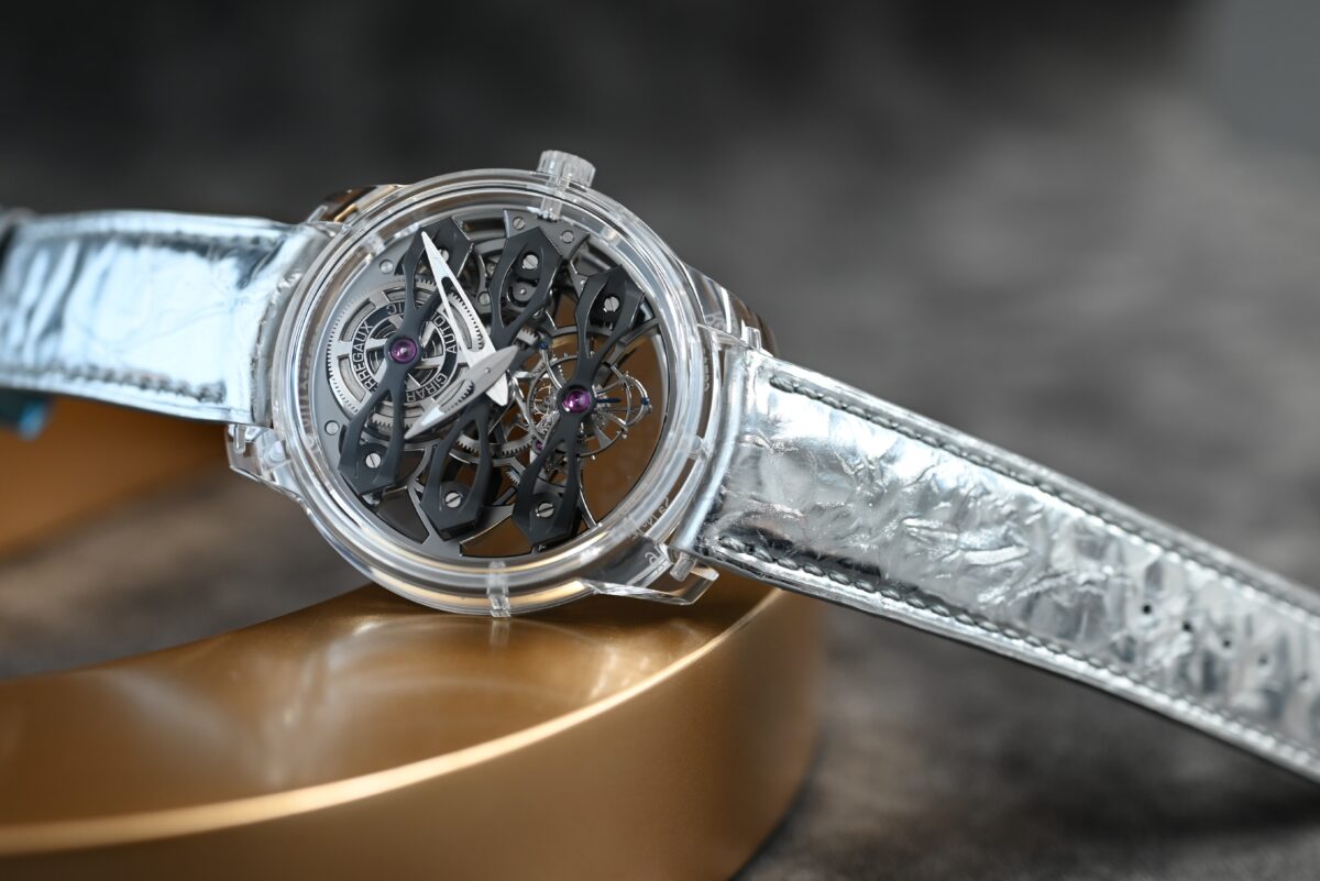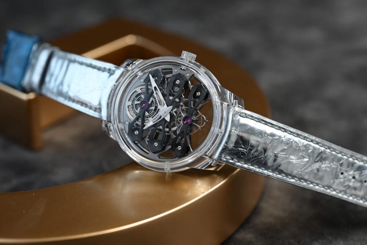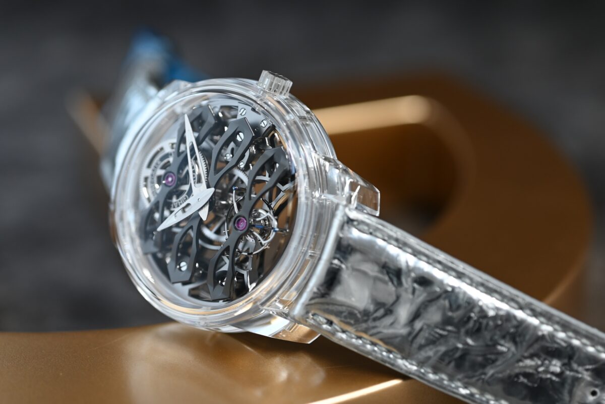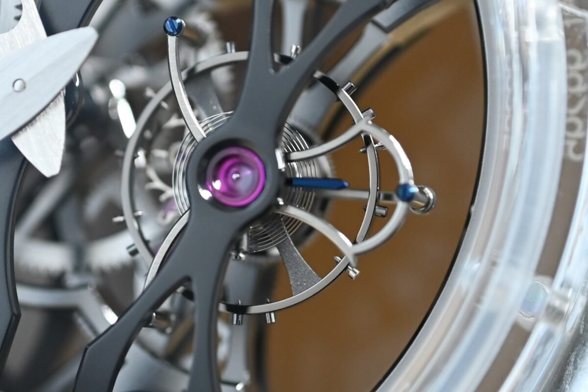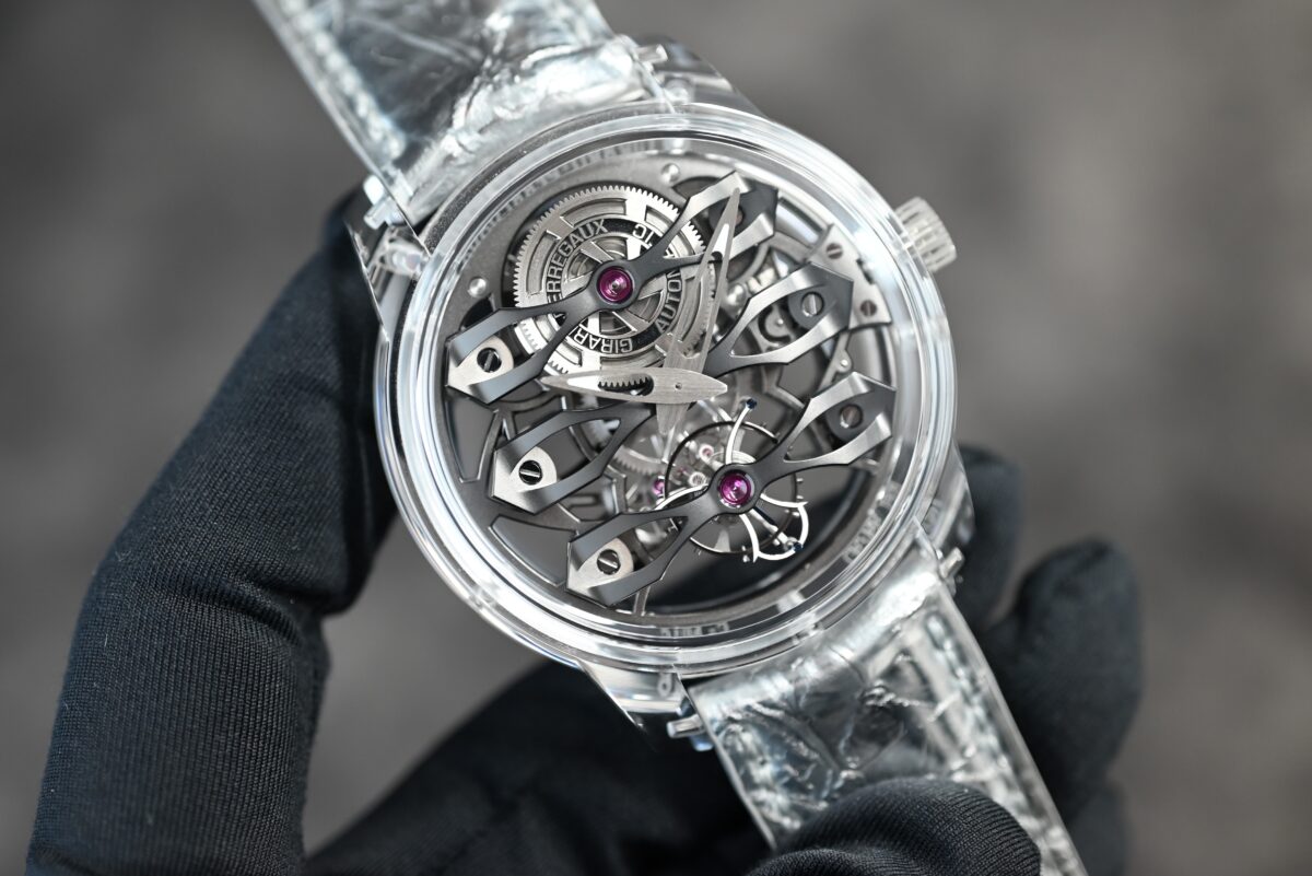 クエーサーは、ジラール・ペルゴとしては初めて、サファイアクリスタルケースを採用したモデルになります。