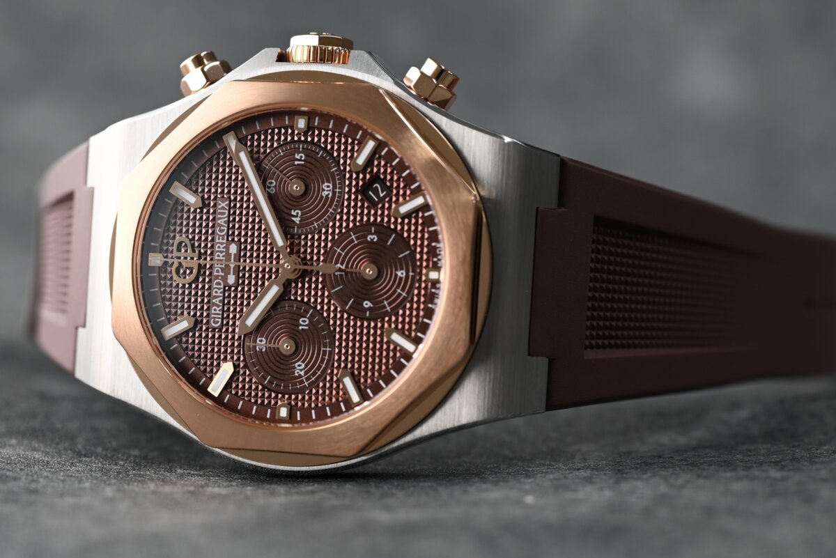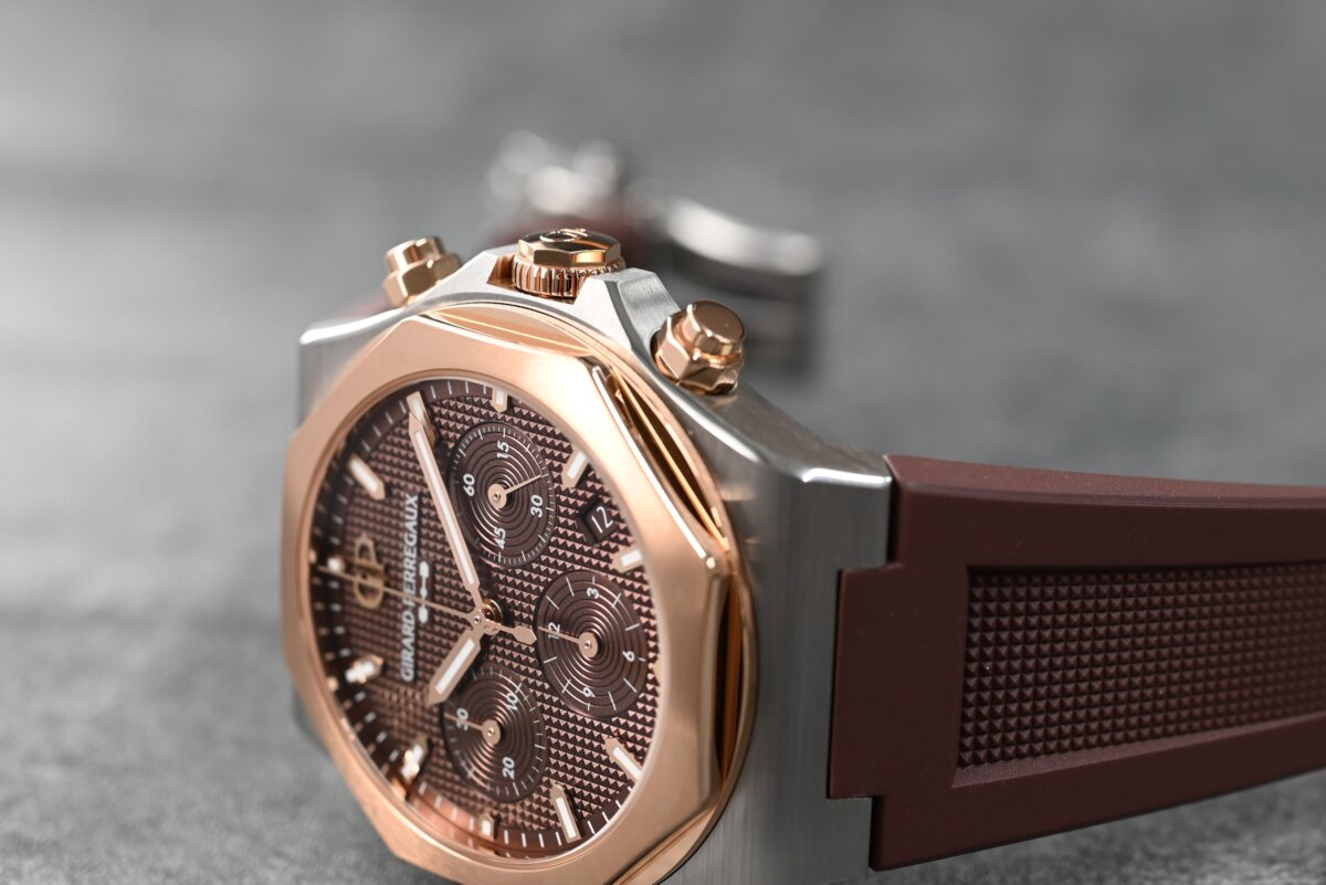今回発表された新しいロレアート クロノグラフは、904Lステンレススティールとピンクゴールドを組み合わせた”コンビ”モデルになっています。